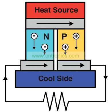 圖 3: 溫度梯度通過塞貝克效應在電路中產生電壓
