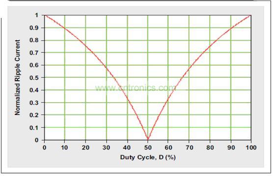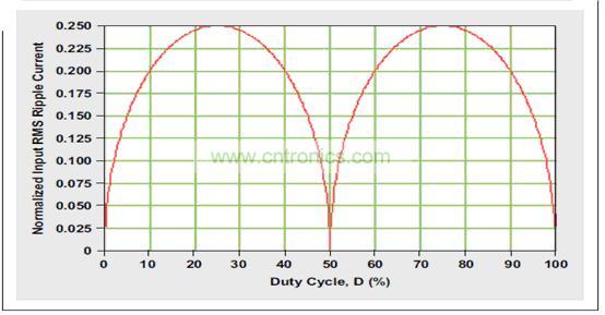 圖5 標準化輸入RMS紋波電流為占空比的函數