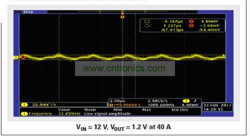 由于每個輸出電感中存儲的能量降低,負載瞬態性能隨之提高。電流抵消帶來的紋波電壓降低,幫助實現了最小輸出電壓過沖和下沖,因為在環路響應以前許多周期都已結束。紋波電流越低,干擾越小。