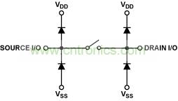 要完全弄清楚模擬開關上故障狀況造成的影響,首先必須查看其內部結構和工作極限。