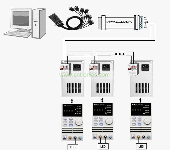 LED老化測試系統(tǒng),由直流電源與控制軟件搭建而成,具體如下圖所示: