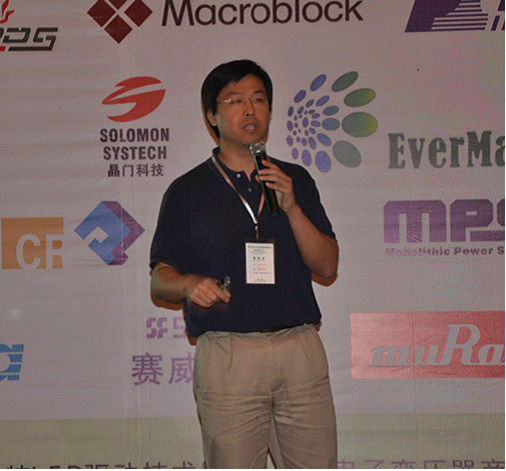 士蘭微產品應用工程經理蔡擁軍發表了《照明驅動器新產品及方案》的演講,主要從DC-DC LED驅動器和AC-DC LED驅動控制器及未來產品的趨勢作報告。為國內規模最大的集成電路芯片設計與制造一體(IDM)的企業之一,士蘭微在今年新推出了幾款LED驅動控制器產品。以非隔離AC-DC控制器為主,例如SD6900。隔離型AC-DC產品推出了SD6955。