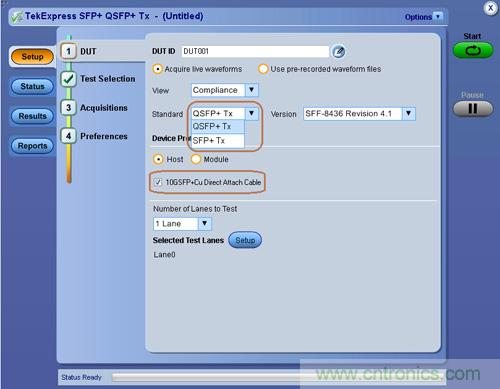 SFP+QSFP+Tx解決方案利用簡單的菜單驅動式測量設置以及提供一鍵式一致性測試,加上自動的“通過/失敗”報告生成,幫助提高測試測量效率。除標準的一致性要求外,該解決方案還支持設計鑒定,并具有對測試配置(如分析窗口和其他參數)的靈活控制。如對設計的一致性測試失敗,使用者可利用DPOJET(抖動和定時分析)設置文件來減少調試時間。