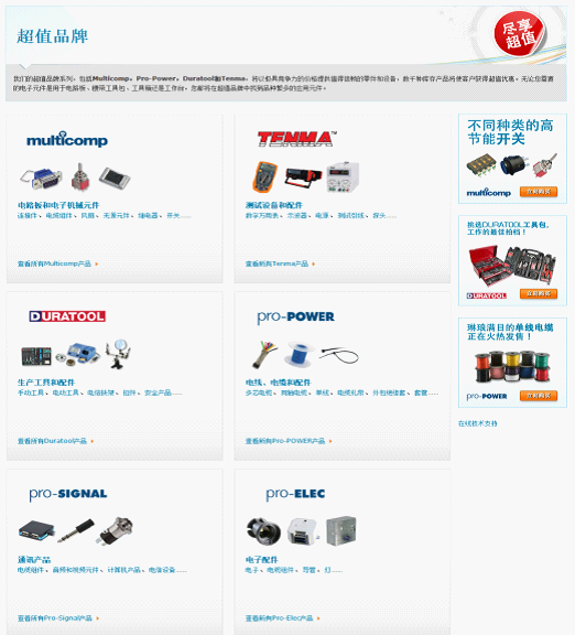 連接器、電容、電阻、半導(dǎo)體、燈具、發(fā)光二極管、開關(guān)、保險(xiǎn)絲、變壓器、風(fēng)扇和配件等,同時(shí)可通過該平臺(tái)非常方便地研究、比較、購買所需產(chǎn)品,并享受2013年全新優(yōu)惠價(jià)格,獲得更大價(jià)值。