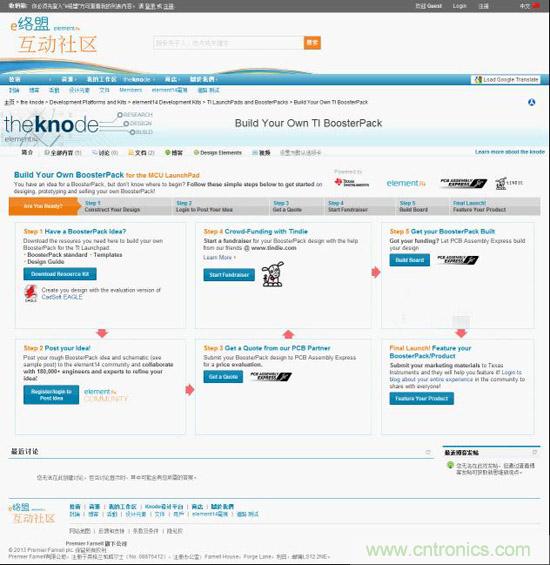 e絡盟母公司Premier Farnell集團首席技術官沈洪先生表示:“我們很高興能夠在強大的e絡盟社區推出這個行業首屈一指的網站平臺。e絡盟社區現擁有20萬社區成員,通過將設計工程師、業余愛好者及供應商合作伙伴集中到一個平臺,以便他們進行直接交流,極大地縮短了新品上市時間。我們極力鼓勵并支持用戶開發針對TI MCU LaunchPad的擴展板。我們將幫助他們進行概念設計、產品開發、原型設計,直至最后投入市場。”