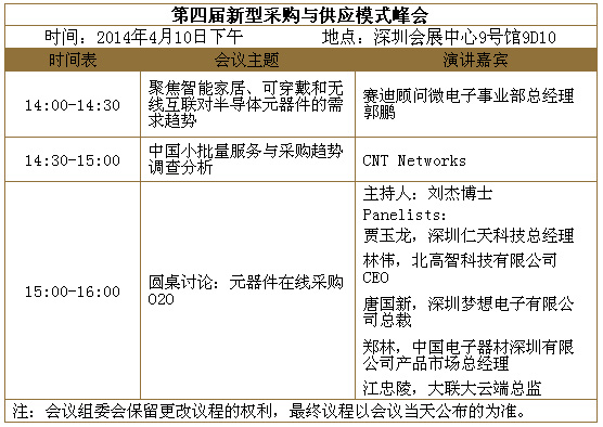 此次峰會旨在幫助供需雙方的經理人了解熱點市場帶來的對半導體元器件的需求變化,中國小批量供應服務與采購趨勢。圓桌討論將針對采購和供應中的熱點話題,中國電子分銷商聯盟秘書長劉杰博士與行業領先的國內和國際分銷商總裁和總監們逐一分享思路,歡迎參與互動。參會可以通過網上或微信(關注我愛方案網),報名注冊:m.tzzsdz.com/seminar/95/agenda