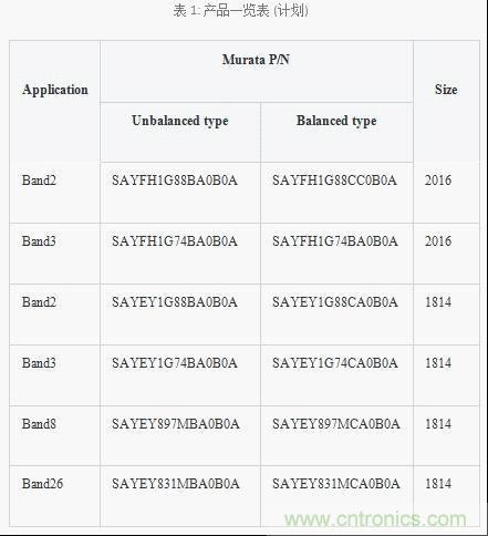 村田制作所的TC-SAW產品陣容
