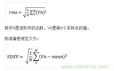 為了計算電源輸出上只是噪聲和紋波的rms值,你可以選擇標準偏差或交流rms。