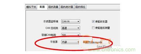 打開CANStress配置,將干擾源確定為內(nèi)部。保證CANL對(duì)地短路。如圖 7所示。