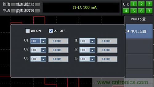 在如圖1所示測量菜單里,用戶可配置自動(dòng)調(diào)零開關(guān),若開啟自動(dòng)調(diào)零,則在改變測量量程和輸入濾波器后,儀器會(huì)自動(dòng)執(zhí)行調(diào)零;而如果長時(shí)間使用同一個(gè)測量量程和輸入濾波器,PA8000高精度功率分析儀的零電平就可能因周圍環(huán)境的變化而發(fā)生改變,這種情況下,須執(zhí)行手動(dòng)調(diào)零。