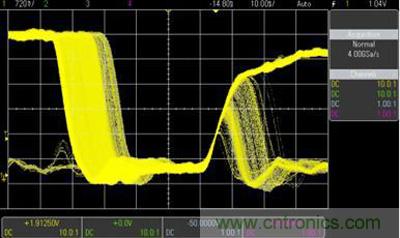 圖 4. 示波器具有超過每秒 1,000,000 個波形的更新速率,讓用戶可以看到意外事件和毛刺。