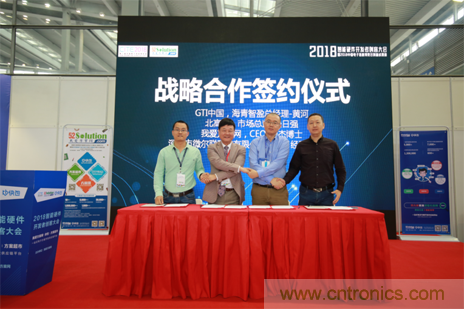 在開啟技術方案平臺+供應鏈創新模式的同時,我愛方案網與美國GTI戰略合作簽約儀式也成功舉行,邀請到GTI中國海青智盈總經理黃河先生,北高智市場總監朱仝日強,我愛方案網CEO劉杰博士,深圳市微爾聯科技總經理溫曉標出席。這也是2017年末AI應用聯盟活動的落地,我愛方案網作為GTI芯片方案服務商,攜手第一批代理商北高智、方案開發公司微爾聯,聯合將GTI芯片逐步推向終端市場。