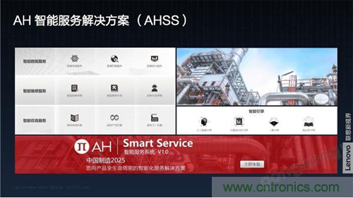 聯想新視界AH智能解決方案基于人工智能與AI技術將傳統工業維保提高到了一個新的水準。其包括智能數據,智能維保,智能仿真三大服務模塊和一系列智能引擎。各模塊之間既有機結合,作為一個完整系統工作,又可以作為獨立產品各自工作,根據客戶的需求進行模塊裁剪。同時,聯想新視界還提供了四大硬件服務(工業維保眼鏡、虛擬交互眼鏡、虛擬互動臺、智能服務器)。AH智能服務解決方案(AH Smart Service 1.0)聚焦于服務智能化。提供了從工業互聯網到維修服務的完整系列產品和工具,將企業產品與AH云服務連接,通過數據監測與分析幫助進行設備故障預測和整體健康程度的評估。通過融合IT和OT技術,使AH智能服務平臺重新定義了工業售后維保服務體系。