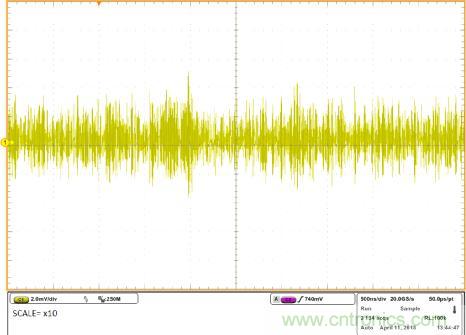 但什么是頻譜噪聲密度呢?如果您及時(shí)測(cè)量噪聲,您只能看到噪聲的絕對(duì)振幅值,但不能看到所有噪聲屬性的頻率。正如上面的圖片所示,噪聲在x10的范圍內(nèi)。頻譜噪聲密度曲線是所產(chǎn)生的噪聲之和。每一噪聲都是在窄幅的頻率范圍內(nèi)測(cè)量的。您可在下面的圖片中看到頻譜噪聲密度。