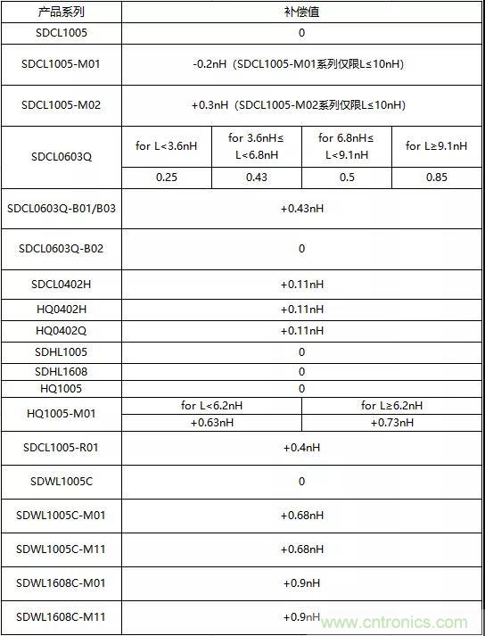 順絡(luò)電子射頻電感的補(bǔ)償值在產(chǎn)品Datasheet中都有注釋。