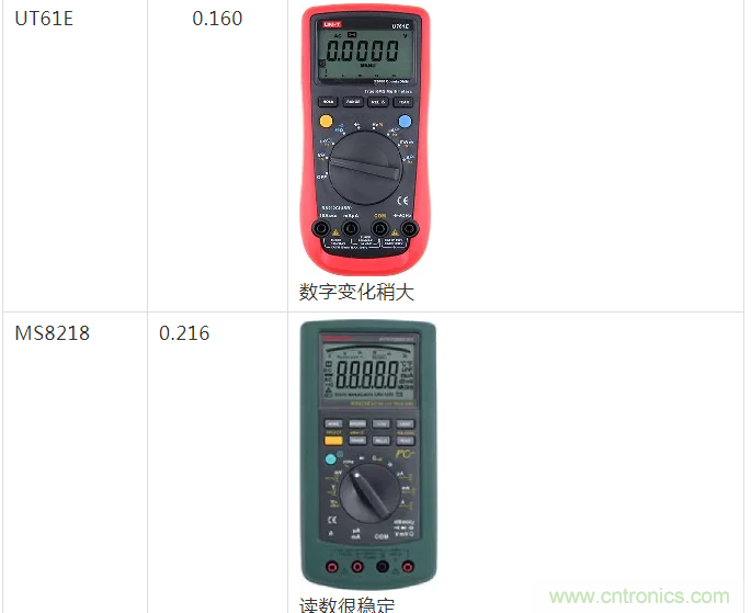 那么,使用數(shù)字萬用表是否可以測量隨機噪聲大小呢?在分析之前,可以先對比幾種不同的萬用表對隨機噪聲測量的結果。