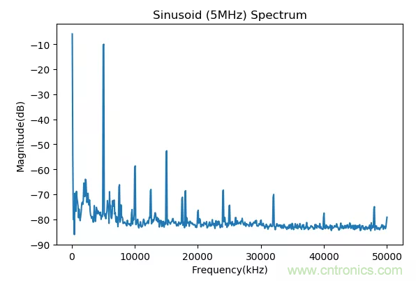 DS345產(chǎn)生的5MHz的正弦信號的頻譜