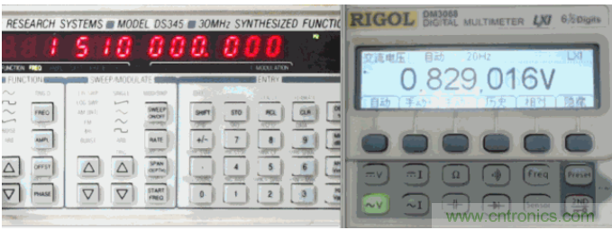 使用七種數(shù)字萬用表的交流電壓檔測量DS345輸出的隨機噪聲信號。它們顯示的數(shù)值各不相同,都比1V小,相互之間也差別很大。