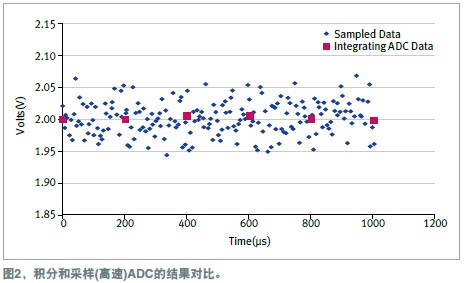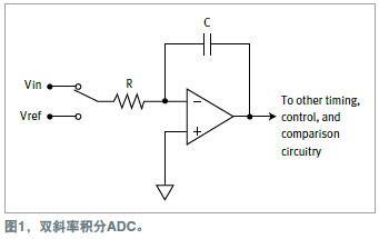 傳統(tǒng)上精密的SMU(信號(hào)源測(cè)量單元)均采用了積分式的模擬/數(shù)字變換器(ADC),這可以讓信號(hào)在一定時(shí)間間隔(稱為積分時(shí)間)內(nèi)平均。圖1描述了一種經(jīng)過(guò)簡(jiǎn)化的雙斜率積分ADC,其基本工作原理是用未知的信號(hào)對(duì)電容充電,然后在基準(zhǔn)電壓下讓電容放電。充電和放電的時(shí)間的比例與未知信號(hào)與基準(zhǔn)信號(hào)間的比例成正比。雖然這一ADC技術(shù)可以提供很高的精度和對(duì)噪聲的出色耐受能力,但電容的充電-放電循環(huán)會(huì)造成測(cè)量的間隔過(guò)長(zhǎng)(至少50µs),這會(huì)讓測(cè)量速度大大降低。相比之下,高速ADC能夠以高達(dá)1MHz的猝發(fā)速率來(lái)對(duì)信號(hào)進(jìn)行采樣。與積分ADC不同的是,這些高速的ADC采用了類似于示波器的采樣技術(shù),即可以獲取隨時(shí)間變化的信號(hào)的快照。它們可以提供高于示波器的分辨率(分別為18位和8位),從而可以以與之相當(dāng)?shù)膸拋?lái)完成更精確的瞬態(tài)特性測(cè)量。