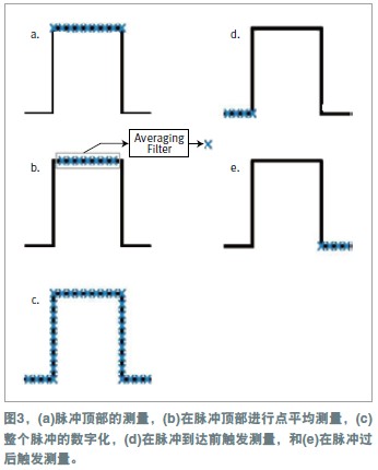 有時(shí),對(duì)脈沖通過(guò)器件或者系統(tǒng)時(shí)的傳輸特性的測(cè)量也很有意義。這些應(yīng)用需要對(duì)整個(gè)脈沖進(jìn)行數(shù)字化,包括其上升沿和下降沿(圖3c)。通過(guò)高速ADC來(lái)進(jìn)行異步于源操作的測(cè)量,就可以完成這種測(cè)量。
