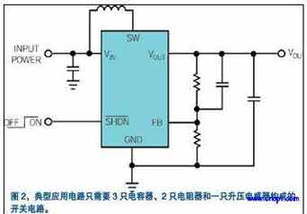 LinearTechnology公司推出的LTC3459是解決這些應用問題的一系列升壓轉換器中的一個例子。LTC3459這種器件有一種突發模式,用以在輕載電流下保持轉換器的效率。它還具有浪涌電流限制、短路保護和關機期間負載隔離等功能。盡管具有這些功能,但典型的應用電路只要求在開關電路中有三只電容器、兩只電阻器和一個升壓電感器(圖2)。Wells說,因為“轉換器工作時的峰值電流小約75mA,所以一個0805小型電感器……能輕易達到與一個集成電荷泵相同的占用電路板面積。”