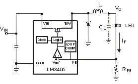 如果直接用電阻RFB來檢測IF,這樣在精度上就可以滿足要求,但是在電阻上將會產(chǎn)生額外的功耗。降低反饋電壓VFB,在同樣的檢測電流IF(圖.2)的情況下可以降低檢測電阻的阻值,這樣就可以使功耗降到最低。最新的LED驅動大多數(shù)提供的參考電壓(反饋電壓)在50-200毫伏之間。
