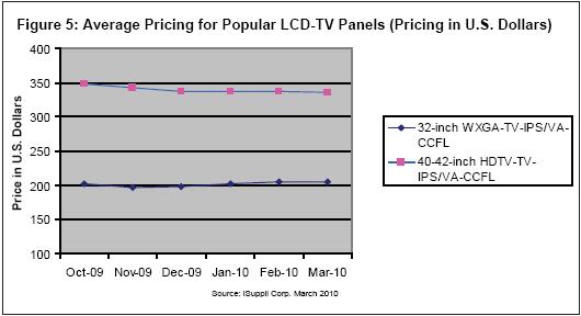 2009年液晶電視面板價格已達到很高的水平,因此2010年進一步上漲的空間很小。而且春節期間的電視銷售不如廠商的預期。因此,預計3月份中國的面板需求預計放緩,導致當月電視面板價格持平或略有下降。