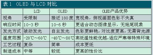 有機發光顯示器件之所以受到人們的青睞,是因為其與LCD為代表的第二代顯示器相比,有著突出的技術優點(見表1):