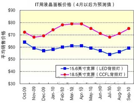 圖1:IT用液晶面板價(jià)格走勢(shì)(4月以后為預(yù)測(cè)值)