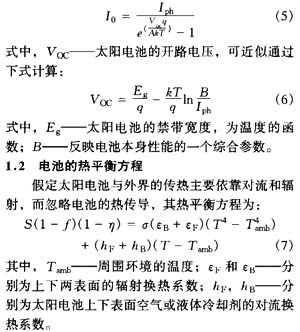 由上述模型可以看出,太陽電他的輸出特性和工作溫度不可能通過分析解來得到,必須通過迭代和數值模擬的方法得到。計算方法是通過熱平衡方程得到太陽電他的工作溫度,然后通過太陽電他的電特性方程計算電他的伏安特性,得到太陽電他的峰值輸出功率、轉換效率等參數,然后再把新的轉換效率代入熱平衡方程進行新一輪計算,直到滿足計算精度為止。