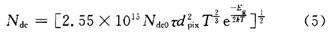 對于CCD圖像傳感器而言,導致暗白點、白色損傷或顆粒的原因是由于光電二極管的暗電流,這也是決定畫質最重要的因素。固定圖像噪聲的起因是各像素中暗電流不均勻,即使沒有入射光一樣會發生,它與噪聲信號電壓的儲存時間成正比,并具有與溫度密切相關的性質,如式(5)所示: