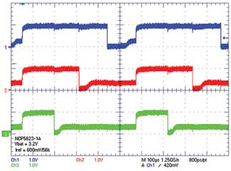 圖5中的波形源自工業應用,它展示了嵌入在所選器件中的三個PWM的特性。三個LED采用一個共同低頻時鐘控制,并帶有一個占空比設置來適應給定應用。這很明顯能夠獨立地減弱或增強每個PWM,范圍在0~100%的占空比之間,而ILED峰值電流為恒定。
