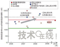 政府機(jī)構(gòu)的資助額大多為3年內(nèi)數(shù)億~30億日元的規(guī)模,德國“OPAL(OrganicPhosphorescentlightsforApplicationsintheLightingmarket)”項(xiàng)目為5年內(nèi)1億歐元(約合140億日元),遠(yuǎn)遠(yuǎn)多于其他項(xiàng)目。在發(fā)光效率方面迅速追趕白色LED有機(jī)EL照明雖然具有一些獨(dú)特的特點(diǎn),但考慮到實(shí)際影后,還是避免不了在發(fā)光效率、使用壽命、成本等基本性能上與白色LED及現(xiàn)有照明技術(shù)一決高低。近來有機(jī)EL照明的性能得到了大幅提高。首先是發(fā)光效率。目前,有機(jī)EL照明在研發(fā)水平上比白色LED約落后約2年。2008年6月美國UniversalDisplay(UDC)發(fā)布的“102lm/W”的發(fā)光效率,與2006年3月日本日亞化學(xué)工業(yè)發(fā)布的白色LED的發(fā)光效率不相上下。山形大學(xué)的城戶表示,“已經(jīng)看到了實(shí)現(xiàn)200lm/W的曙光”)。