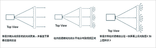 (UCS/RUCS屏幕)在兩層透鏡之間的光學鏡頭表面覆蓋了一層黑色素層,可吸收環境光,柱狀的鏡頭能拾取投影機的光線,并傳送到觀視者,而前面的環境光則會被吸收。