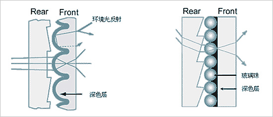 (BB屏幕)這種技術是使用細小的黑玻珠,并在一側噴涂上一層黑色素層。黑玻珠能拾取投影機的光線,并傳送至觀視者。照在屏幕上的環境光則被直接吸收掉