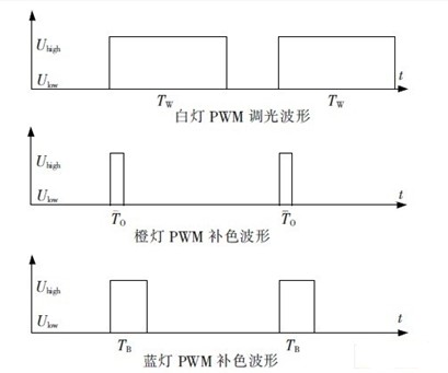 圖2  白燈及補色彩燈的PWM 調光波形圖。