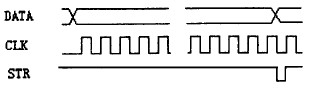 如以單色點陣、16 行×64 列為一個基本單元,則需用8 片74HC595、64個8050及16個行掃描管, 其工作原理為:將八片74HC595 級連,共用一個串行時鐘CLK及數據鎖存信號STR。當第一行需要顯示的數據經過8×8= 64 個CLK時鐘后將全部移入74HC595 中,此時產生一個數據鎖存信號STR,使數據鎖存在74HC595的后級鎖存器中,則與其各輸出位對應的8050 將處于飽和導通或截止; 同時由行掃描控制電路產生信號使第一行掃描管導通,相當于第一行LED的正端都接高平,顯然第一行LED管子的亮滅就取決于74HC595 中所鎖存的信號;在第一行LED管子點亮的同時,在74HC595 中移入第二行要顯示的數據,隨后將其鎖存,并同時由行掃描控制電路將第一行掃描管關閉而接通第二行,使第二行LED 管子點亮。以此類推,當第十六行掃描過后再回到第一行,只要掃描速度足夠高,就可形成一幅完整的文字或圖像,其工作時序見圖2。