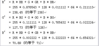 即源信號(R255,G128,B64),在該像素上實際顯示為(R238,G128,B71)。
