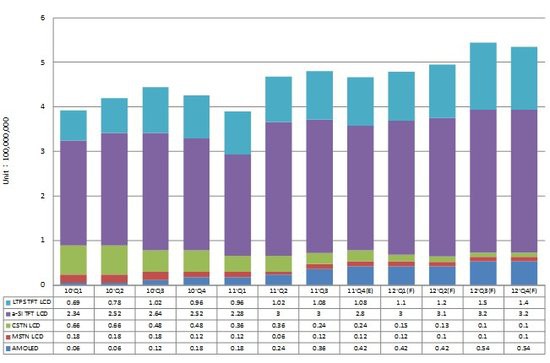 2012年全球手機與平板電腦之中小尺寸面板出貨量預估