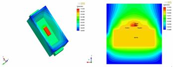 圖8.垂直散熱結構LED熱模擬溫度分布圖