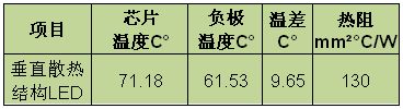 表3.垂直散熱結構LED熱模擬結果(25mA)