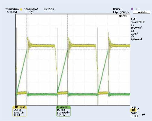 反激式轉換器到目前為止就是一個所謂的硬開關轉換器。其意思是在漏電流較高時MOSFET斷開,在漏電壓較高其接通。因為在每個開關周期里,下降/上升電流和上升/下降電壓交迭,它們的結果是不可忽略的,每次轉換有相當大的稱作開關損耗的功率損耗。在一個DCM反激中,在MOSFET導通時無電流流過,但MOSFET的固有電容CDS必須放電,并且儲存在此電容中的能量必須消耗。如果還記得,儲存的能量為0.5xCDSxVDS2,很顯然,以盡可能低的VDS 接通MOSFET是有利的。