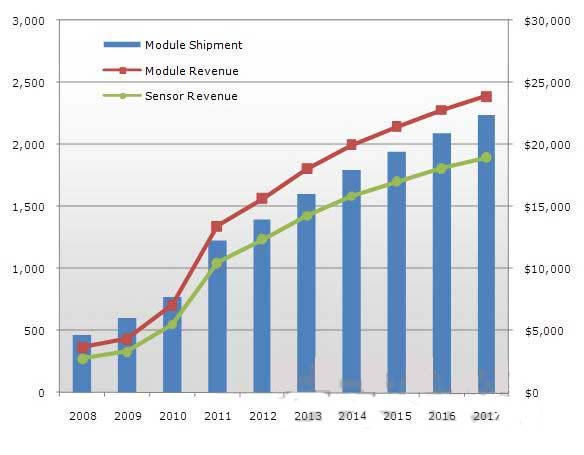 2011年的觸摸面板因智能手機市場的增長而“風(fēng)光無限”。據(jù)美國FPD相關(guān)調(diào)查公司DisplaySearch預(yù)測,2011年全球智能手機面板市場與上年相比將實現(xiàn)90%以上的迅猛增長,并且預(yù)測在2015年之前還將以年均43%的速度增長。由于智能手機市場迅猛增長,輸入和操作所需的觸摸面板市場隨之迅速擴大。據(jù)DisplaySearch介紹,觸摸面板的整體市場規(guī)模2011年達(dá)到了12億片,超過130億美元。預(yù)計按數(shù)量計算將比上年大幅增長60%,按金額計算將大幅增長90%(圖1)。