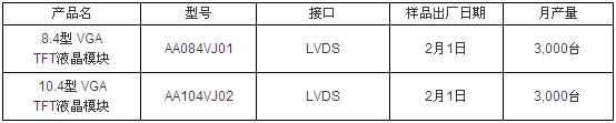 本公司為滿足上述需求,本次特發(fā)售帶有LVDS接口,具有高亮度、高對比度、寬視角等特點(diǎn)的8.4型、10.4型VGA液晶模塊。