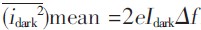 ②暗電流噪聲。光電探測(cè)器在沒(méi)有光照時(shí),由于負(fù)偏壓的作用會(huì)產(chǎn)生毫微安級(jí)的"暗光流".其噪聲均方值為: