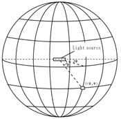 藉由量測光強度分布I(θ,Φ)如圖9所示,光通量可由公式(4)求得。若以亮度探頭量測照度值E(θ,Φ)進行校正,光通亮的計算方式可由公式(5)計算出來。其中γ為相對于亮度探頭參考平面的旋轉半徑。量測光強度時,γ須要有足夠的長度。