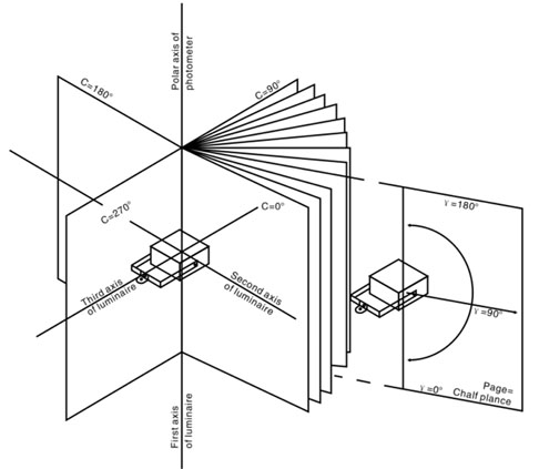LM-79特別說明使用配光曲線儀量得的光強度分布數據,須依照IES LM-63規范定義的格式,形成IES電子文件,以方便后續于照度分度上的模擬計算使用。
