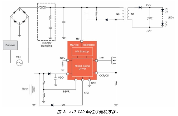 消費(fèi)者用LED節(jié)能燈取代白熾燈等傳統(tǒng)照明解決方案的同時(shí),也希望得到同樣或更好的照明體驗(yàn)。不幸的是,他們常常發(fā)現(xiàn)LED燈在調(diào)光能力上有問題,因此覺得LED燈幾乎不能調(diào)光或調(diào)光時(shí)會(huì)閃爍。很多LED燈與家中已安裝的壁式調(diào)光器也不兼容。Marvell最新的88EM8183深度調(diào)光單級(jí)交流/直流LED驅(qū)動(dòng)器IC為OEM廠商和ODM廠商提供了兼容性最廣泛的調(diào)光解決方案,該IC與全球市場上絕大多數(shù)調(diào)光器都兼容,而且提供卓越的光輸出質(zhì)量,可提高消費(fèi)者的滿意度,減少退貨。