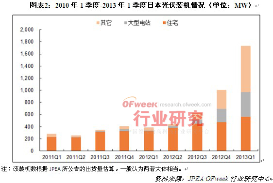 導讀: 根據(jù)日本經(jīng)濟貿(mào)易產(chǎn)業(yè)省公布數(shù)據(jù)顯示,2012年日本光伏新增裝機2.5GW,其中住宅項目為1.6GW,占比65%;2013年第一季度,日本新增裝機1.7GW。