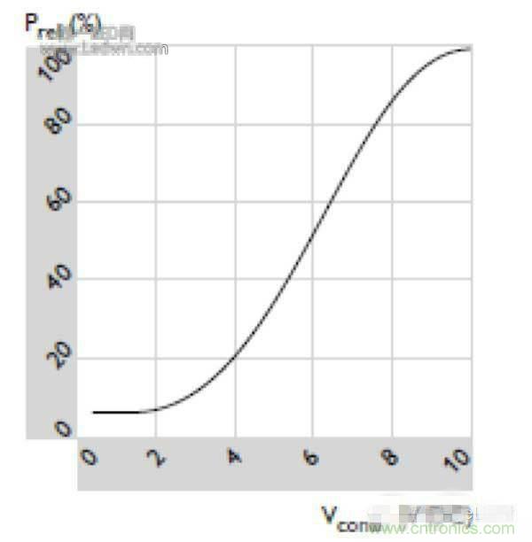 6)調光范圍0.1%-100%,最低限值取決于供應商,調光曲線標準化且適應人眼的敏感度(下圖:對數調光曲線);